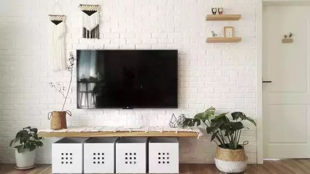 文化磚電視墻上裝上小擱板,擺上精致的擺飾,也是顯得很優(yōu)雅清新。