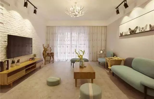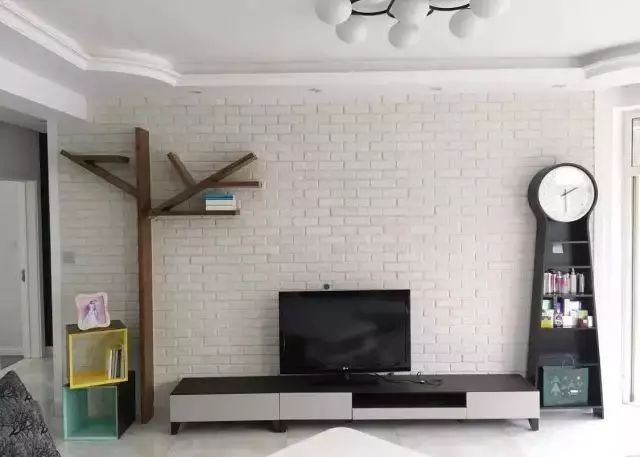 喜歡現(xiàn)代工業(yè)風的年輕人,直接刷白的電視墻顯得太單調(diào)了,那么可以考慮刷一面文化磚電視墻,瞬間讓客廳顯得文藝精致不少。