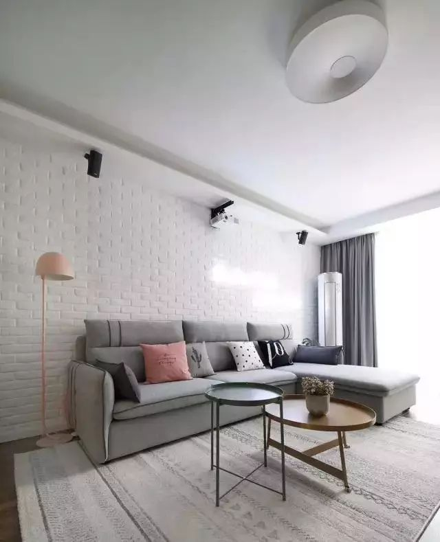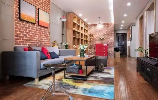 文化磚的沙發(fā)墻,在上邊做隔板架,清新精致又愜意。