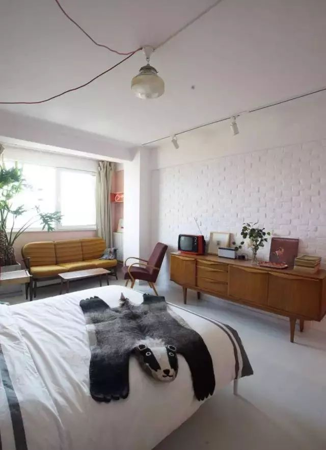 直接在裸磚上滾漆,粗獷又年輕大膽。
