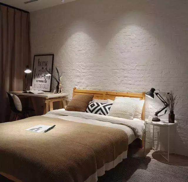 臥室里做文化磚的墻面,比較適合做工業(yè)風的臥室,這種裝飾讓臥室更具文藝氣息,效果也是很棒的。