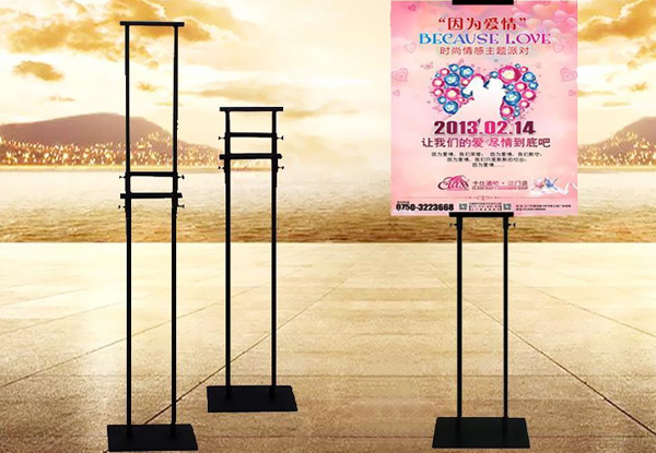 顧名思義,門字形框架,結構性能很好,相比其他同類展架,其不僅僅更為穩(wěn)定可靠,且外觀類似櫥窗,因而看起來更為高檔,備受廣告業(yè)歡迎,底座有鐵藝烤漆材質(zhì)也有塑料注水底座2種,常用尺寸有60×160cm;80×180cm;120×200cm